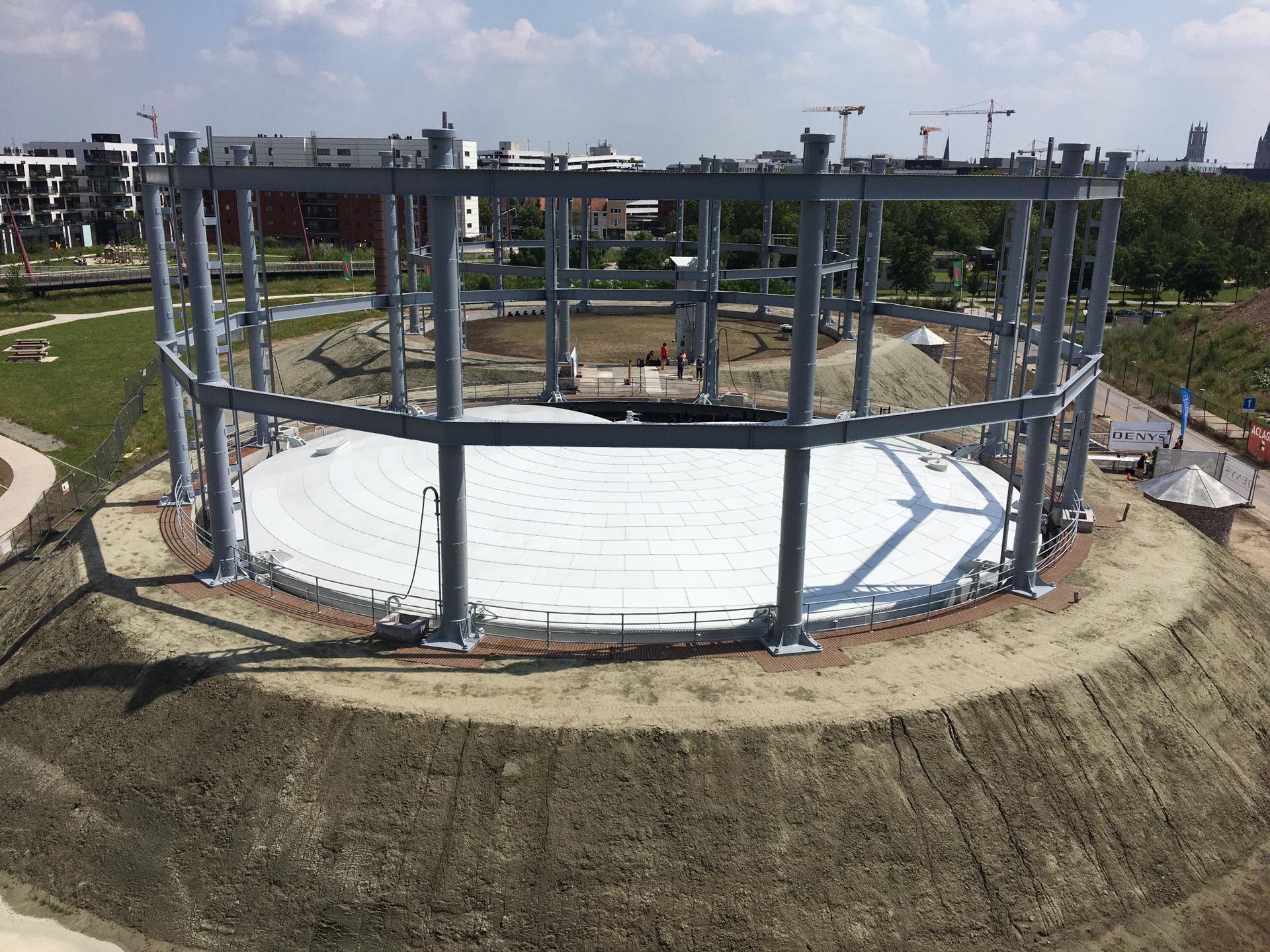 Gashouders raakten lang geleden al in onbruik. De voorbije eeuw verdwenen ze gaandeweg, maar deze twee gashouders hielden stand en werden zelfs beschermde monumenten. Om de gashouders weer een functie te geven, werd beslist om ze te restaureren. Eentje enkel bovengronds, de andere kreeg een totaalrenovatie.