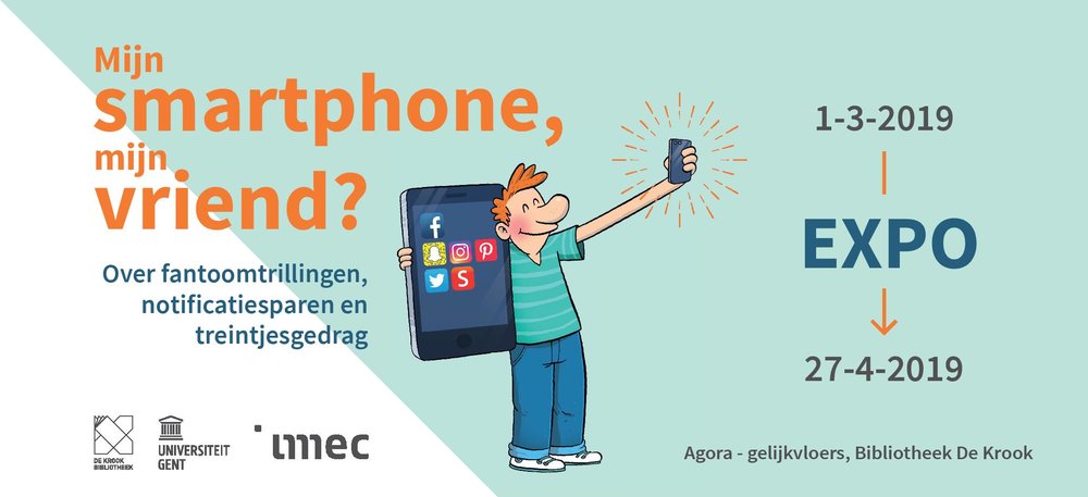 Op 28 februari 2019 opent op de gelijkvloerse verdieping van De Krook een nieuwe tentoonstelling over het smartphonegebruik. In de expo 'Mijn smartphone, mijn vriend?' buigen de verschillende Krookpartners Bibliotheek De Krook, UGent en imec zich samen over de rol van de smartphone in de maatschappij van vandaag en morgen.